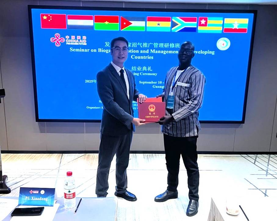 Du 10 septembre au 1er octobre 2025, Jean Philippe Ouédraogo, Directeur du Suivi-Évaluation du Fonds d’Intervention pour l’Environnement (FIE), a pris part au séminaire international sur la promotion et la gestion du biogaz dans les pays en développement, à Chengdu, à Xianyang et à Guangzhou, en République Populaire de Chine.